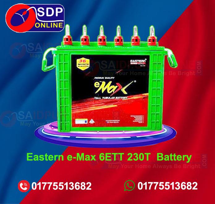 This Eastern e-Max 6ETT 230T tall tubular battery can be used for both IPS & UPS machines. It has a 230 Amapire hours massive battery capacity that ensures a longer time of backup time while using UPS, IPS or solar system. This battery needs 12 volts of power & the battery supports a lead acid rechargeable system.